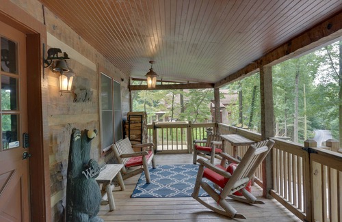 This beautiful original Log cabin is part of Bent Tree has a full kitchen with open living space, with a game area with plenty of board games. Relax and watch TV in the living room or in the privacy of the master bedroom. There are 3 bedrooms, the master with a queen-size bed, tv, and separate bathroom, the second has a queen-size bed and the loft has two twin beds. The back deck is great for relaxing in nature with total privacy, while the front porch is cozy with plenty of ways to relax. From both you can view wildlife; wild turkey, deer (a lot) and even Bear!!! (PLEASE do not feed the wildlife)Wi-Fi internet is available throughout the house.